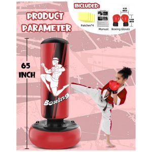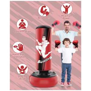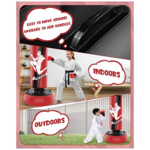 YORWHIN Saco de Pancada Inflável para Crianças 168cm com Luvas de Boxe – Brinquedo Estável para Treino de Karate Taekwondo e MMA