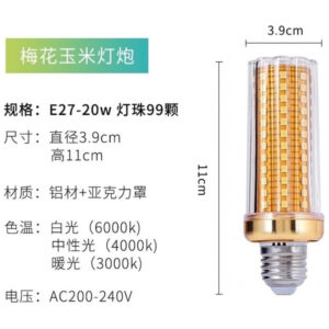A lâmpada YSJX Lights, Pack de 20 unidades, LED Corn Bulb com bases E27/E14, 20W, é ideal para iluminação residencial e decorativa. Ela opera em voltagem bivolt (AC 85-265V), compatível com a rede elétrica do Brasil. Sua luz é quente (Warm White), com tecnologia tricolor, permitindo diferentes tonalidades conforme a necessidade do ambiente.