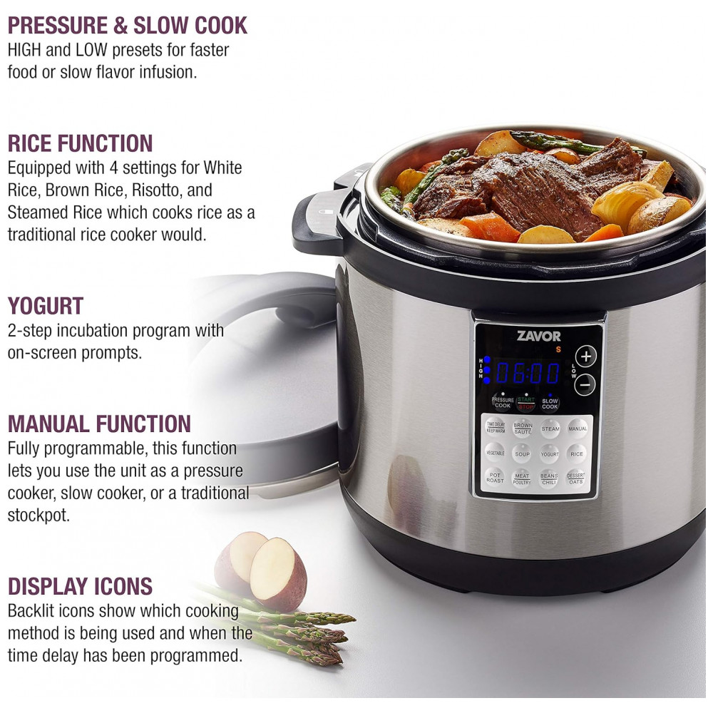 Zavor LUX Edge Panela Elétrica Multifuncional Programável 757 Litros Pressure Cooker Slow Cooker Rice Cooker Yogurt Maker Steamer em Aço Inoxidável