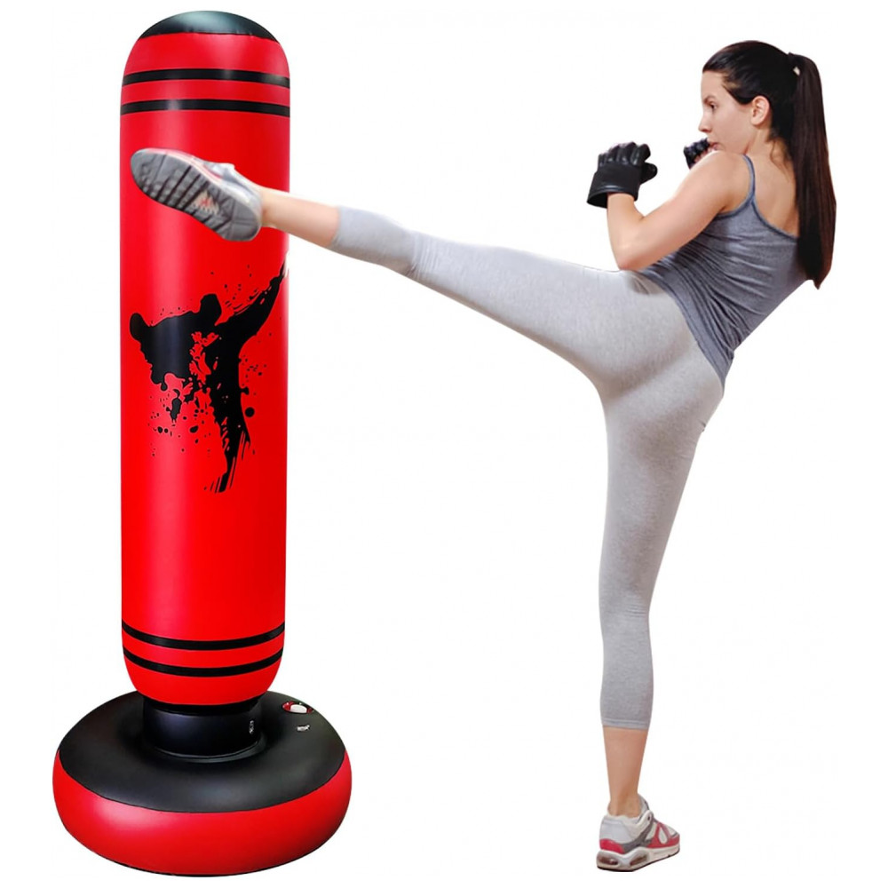 ZHUYNXIR Punching Bag Infantil Inflável Vermelho e Preto – Bolsa de Boxe Portátil para Crianças