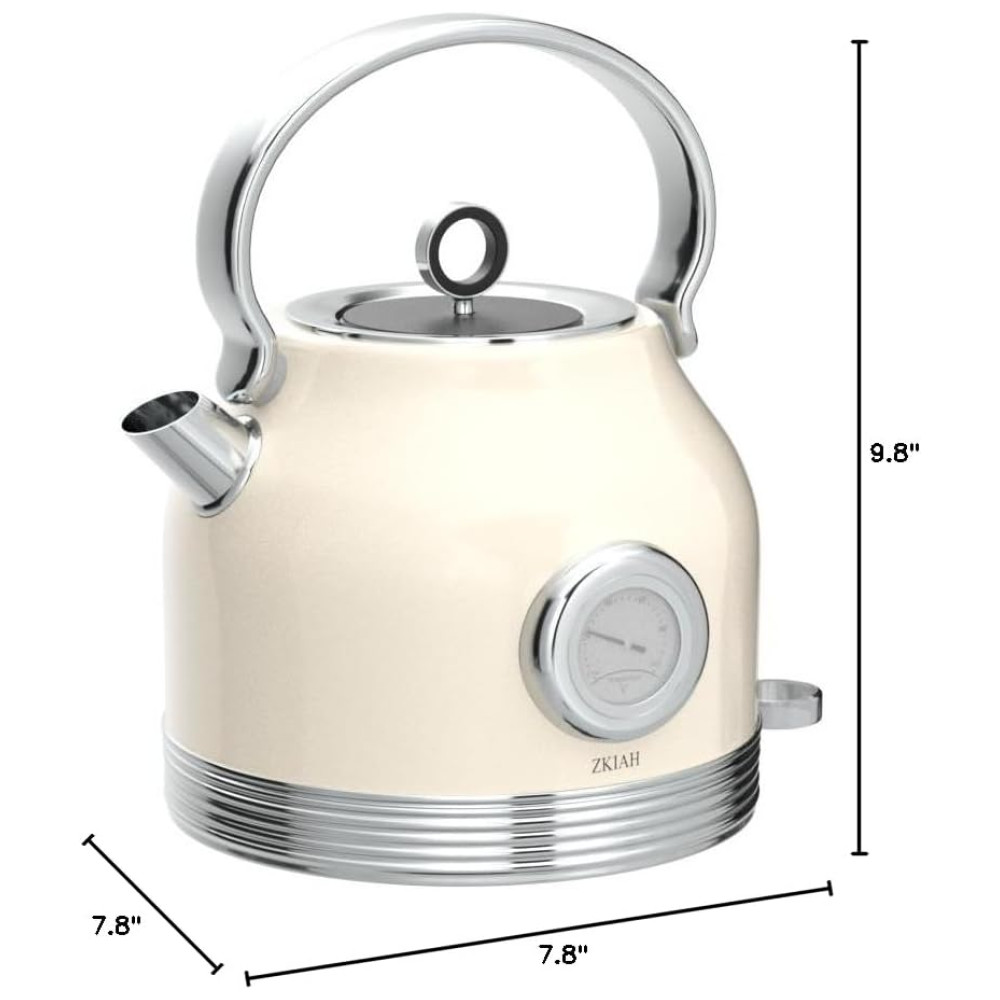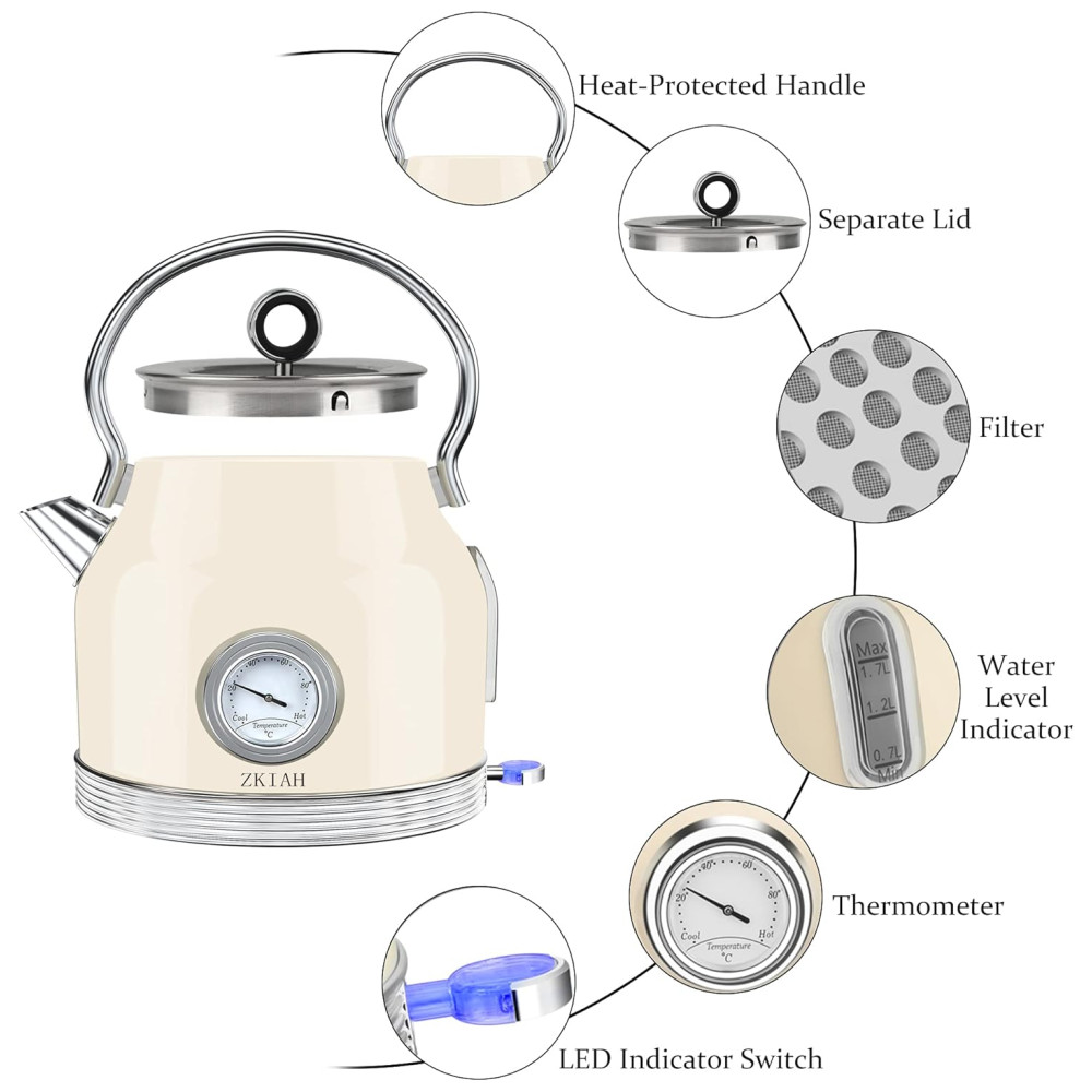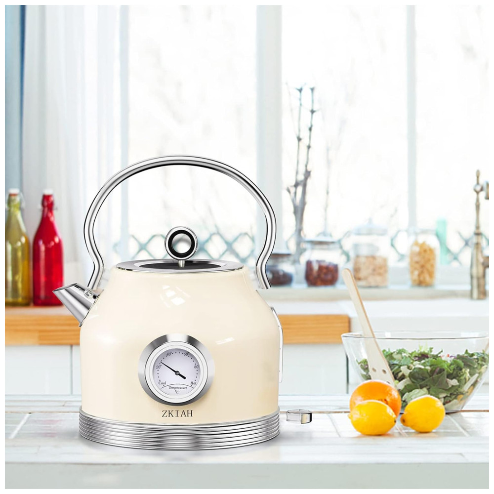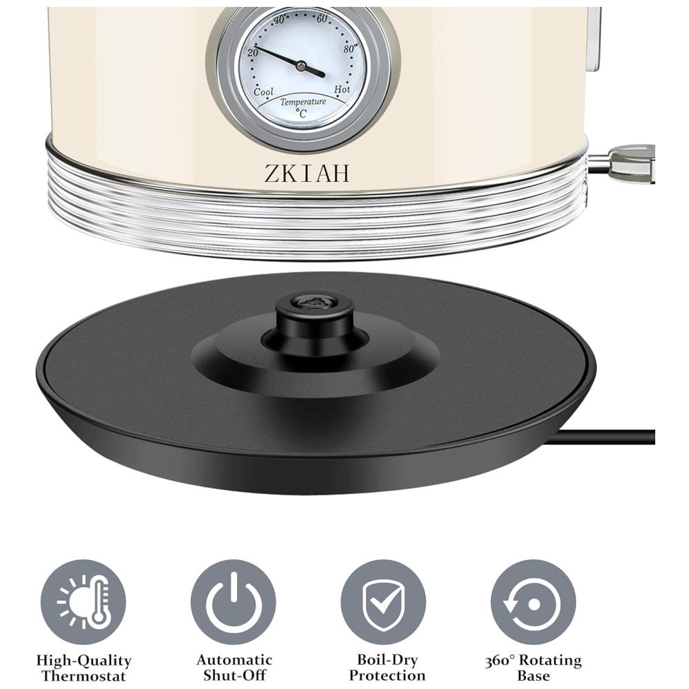 ZKIAH Chaleira Elétrica 1.7L Aço Inoxidável c Desligamento Automático e Interruptor de LED 110V 1200W Bege