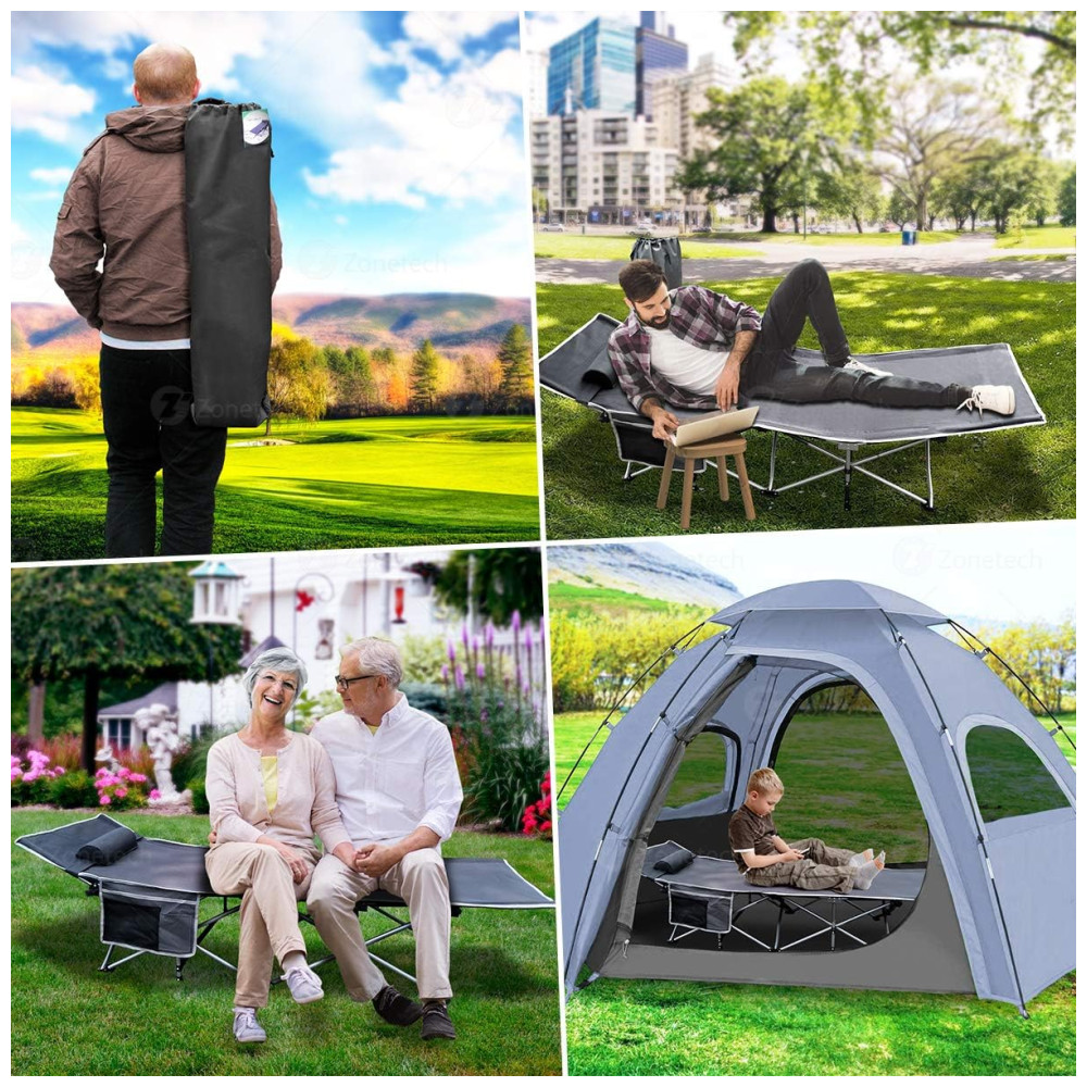 Zone Tech Cama Acampamento Camping Dobrável Portátil até 136 kg ZONETECH Preto