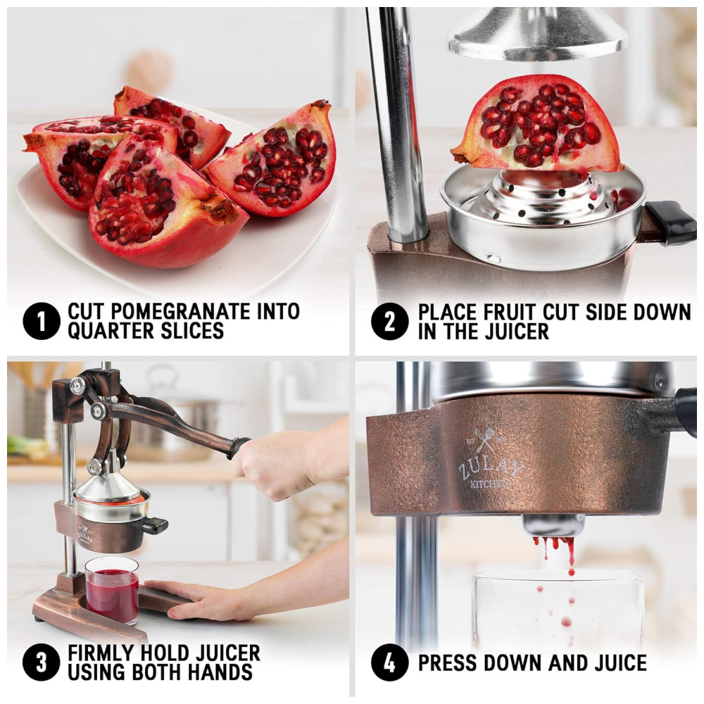 Extrator de prensa manual de grau Feito de ferro fundido durável e resistente, com design ergonômico. O espremedor de frutas cítricas usa efeito de alavanca e gravidade para fazer o trabalho com pouco esforço. A ação da alavanca praticamente faz o trabalho por você. Capacidades de britagem potentes e seguras. Esmague e espreme uma variedade de pequenas frutas e vegetais no conforto da sua cozinha.